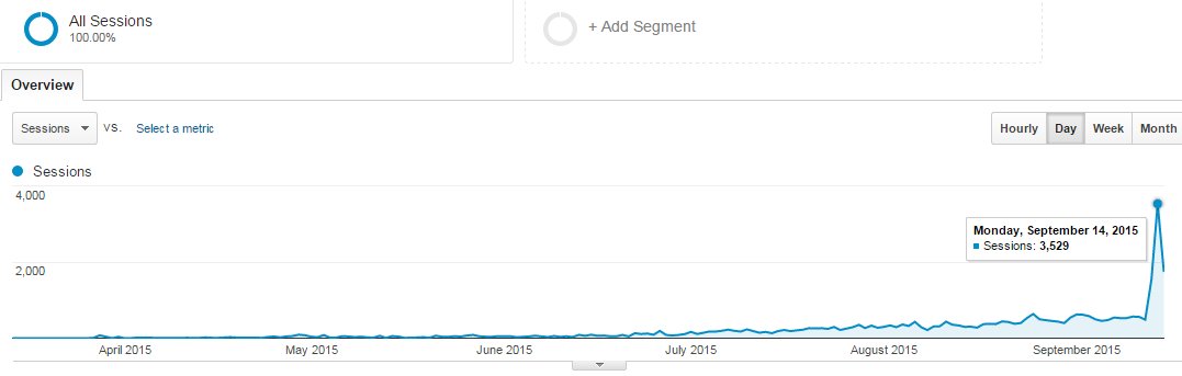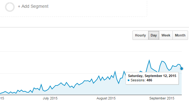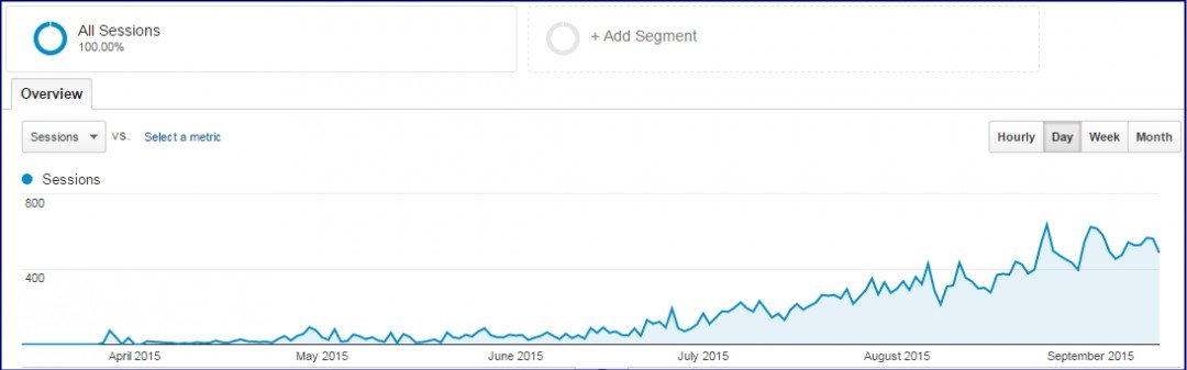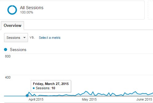 Before showing the graphs, you need to know when I started my Internet Marketing website (so first content is actually on 14th of March 2015). And six month means until 14th of September 2015. But let me show you from the beginning when I start adding Google Analytics code to my site around March 27.
