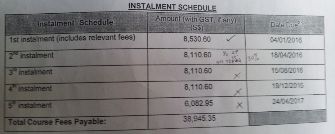 The original cost is S$38,945.35 but I have paid the first-two installments..but managed to get refund from 90% of 1/2 of 2nd installment. So I am able to save net S$25,953.92 which around US$19,368