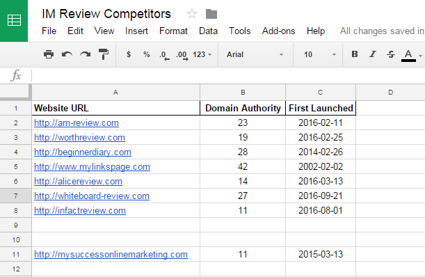 I copy every single competitor "main website URL" that I found on the 1st page of Google, under a specific product review keyword.