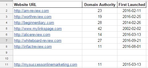 After that.. I check each of the website's DA (Domain Authority) using this tool: