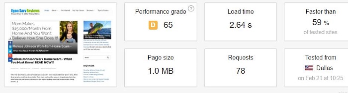This initial performance grade 65 (D) is according to Pingdom. (Not to get too complicated, I follow only Pingdom Speed test in this post.)
