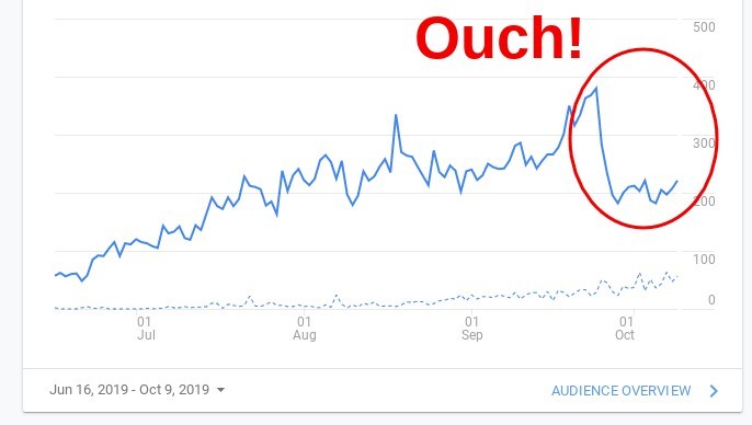 On September 24th, 2019 Google did a core algorithm update that really hit one of my websites hard... knocking about 50% of the traffic I had off. I was up to about 400 visitors per day at the site's peak and then this happened...