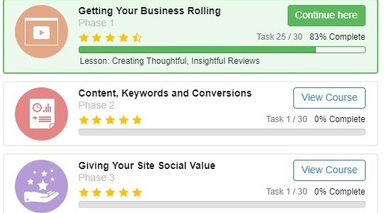 1. Well segmented into bite sized portions made up of 10 levels, each with 10 "chapters" I will call them. Each level teaches an area of online business so that it's easy to find information and redo it.
