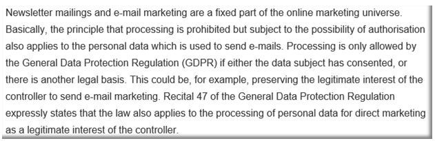 If you operate an affiliate website where you routinely collect e-mail addresses for e-mail distribution lists so you can direct market your clients, then you must be GDPR compliant, but it depends. The following snippet explains this and the "loopholes" around it: