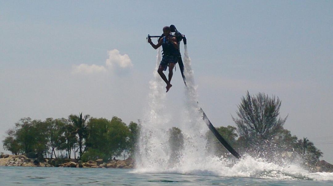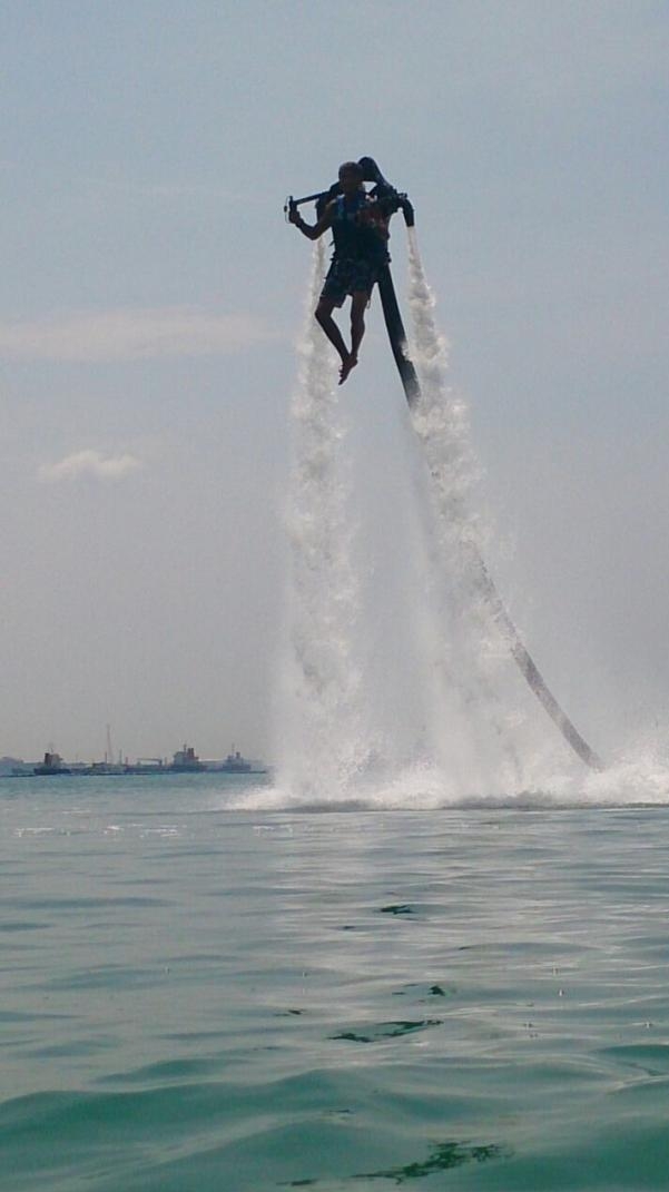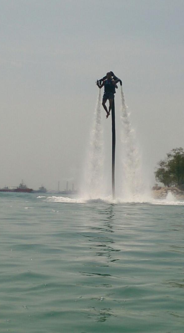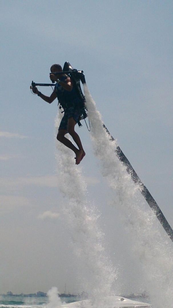 Working at the beach on the Sunday when people having family day, feeling bored and tried our jetpack / Jetlev.