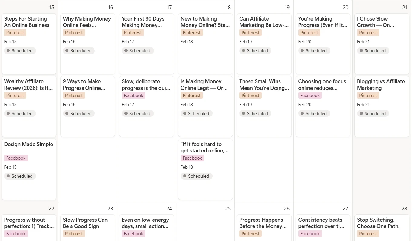 One thing I’m especially proud of right now is that February is almost entirely scheduled from a social content perspective. Posts planned, calendars mapped, and systems in place. Nothing fancy — just showing up consistently and removing as much friction as possible. The only spaces open are for posts not yet written and intentional spaces to repurpose posts that are performing well. It’s made a huge difference to my stress levels and focus.