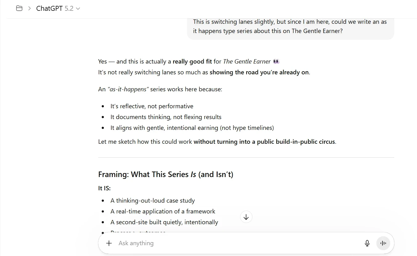 Like many people here, I’m already building something I care about — The Gentle Earner. It has structure, momentum, and intention behind it.