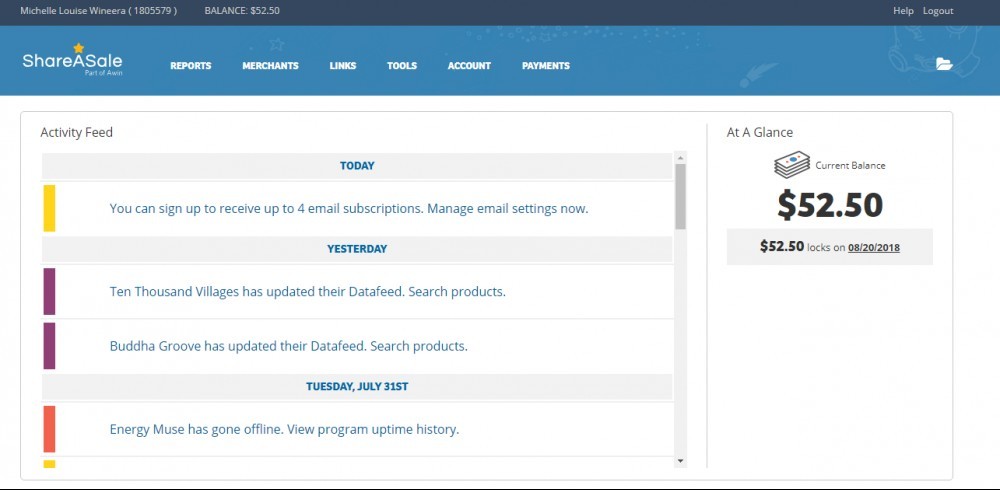 Well...Im doing what we do and follow the training, Im still working on my websites doing what we do best, writing articles and sharing our valuable content. I go find me an affiliate link that I feel will go great with my post from share-a-sale and place the link into my post just like we had been taught. Then not more than a week and a half later, I go to my share-a-sale to go find another product, when BOOM my eyes attached to some exciting news, after I opened my shareasale and there on my dashboard I see... $52.50! Hehe I chuckle to myself! saying to myself as I go through the pages to find out how did I get that sale? Anyway it was a water-smacker that I sold, a microclustering alkaline ionized water machine that I did my review page on! Haha! I thought man, "Kyle you really do know what your teaching us here" as I sit in amazement staring at this commission I just made, my very "first commission sale" WOW! .