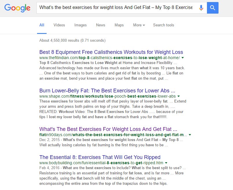 And last but not least, from Google with the same Keyword (whats the best exercises for weight loss - My top 8 exercises):