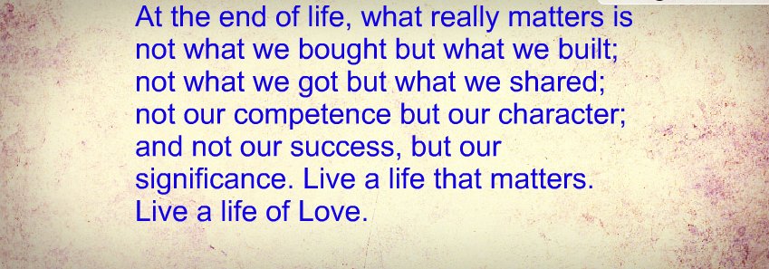 whatever you do in this life, Do not forget the essential ... don't let what you consider essential closed in cave with a dor that is shut forever!