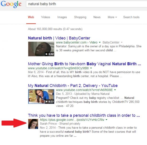 Then wallah! I use one of my most generic keywords and I see my face staring back at me. Now, granted it's a reference to my Google+ account, referencing my website post, but that's good enough for me!