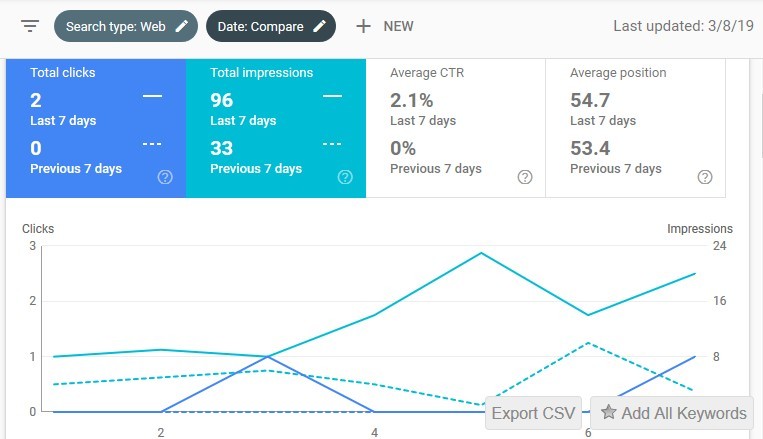 I actually got a couple clicks finally! Also my impressions tripled...I'll take that.