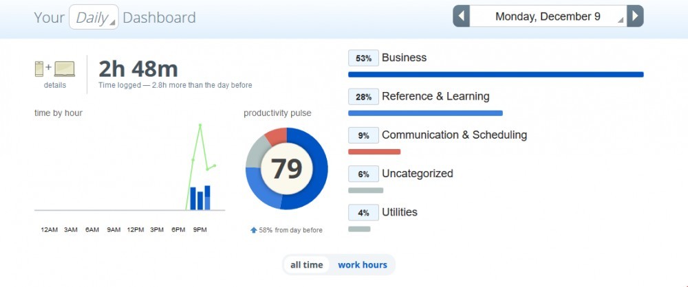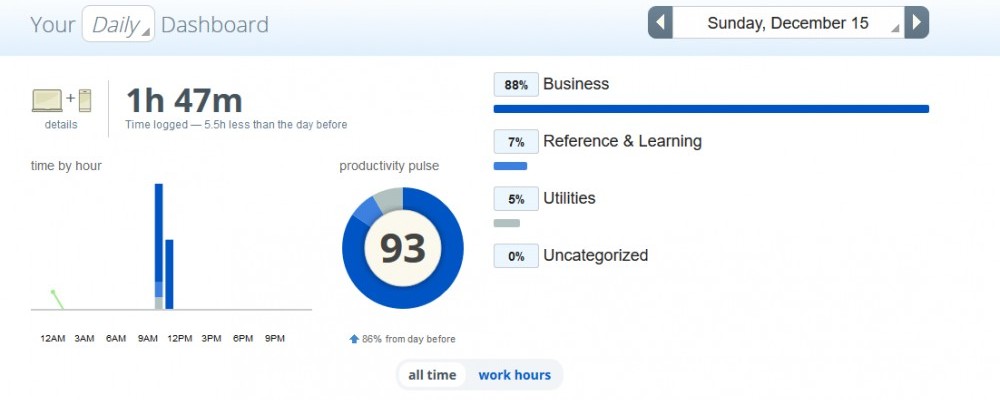 When you are done being productive or want to see where your time went, go to your task bar and click on the Rescue Time icon to open it and critique your time.