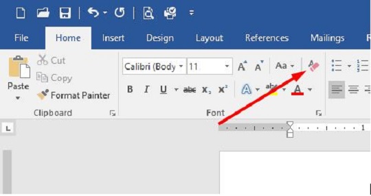 Now, to avoid this hassle, there is a very easy solution provided by Words itself. When going to the home ribbon you will see an icon with the picture of the “A” character being erased (see below).