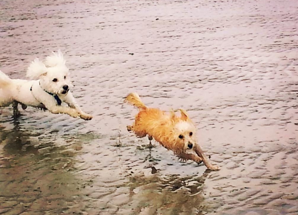 This is him chasing his buddy Tiny on the beach.