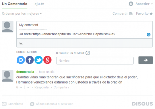 This story from Eju.tv, in the comments, we see the great and wonderful Disqus. Easily identifiable by it's very clear layout at the top. (In this case it's in Spanish).