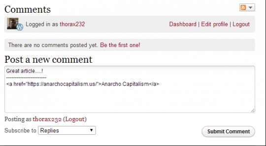 In our third article over at Liberty Law Site, we find my most favoritest form for commenting. This is also a Wordpress default, but does not require readers to be signed in in order to comment: