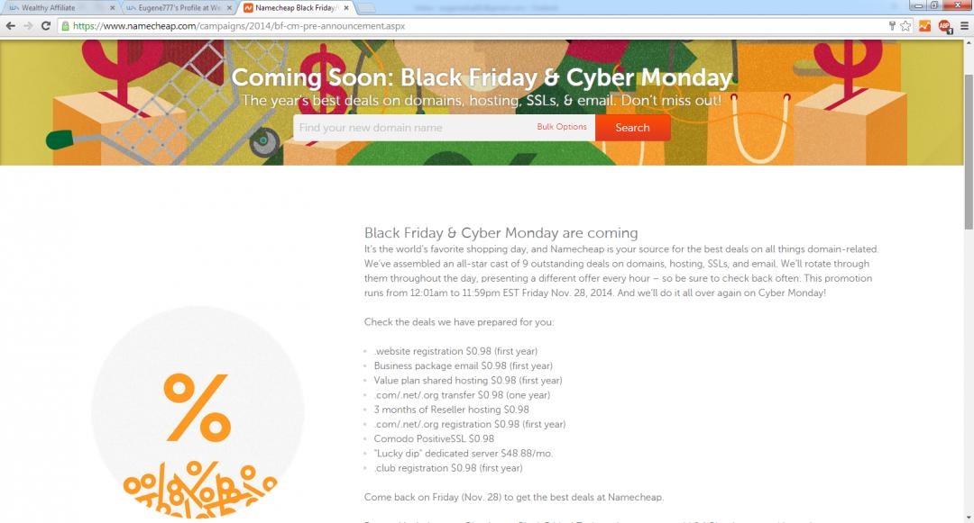 Come back on Friday (Nov. 28) to get the best deals at Namecheap.