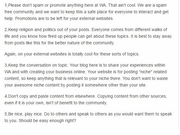 2,No copied content allowed to be posted here at Wealthy Affiliate. This content will be immediately removed and you will lose posting privileges.
