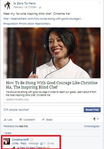 That's the official FB Page for Christine Ha herself! I'm surprised because I didn't tag her FB Page, but somehow it get noticed to her. What a small surprise to motivate me consistently sharing on social media :)