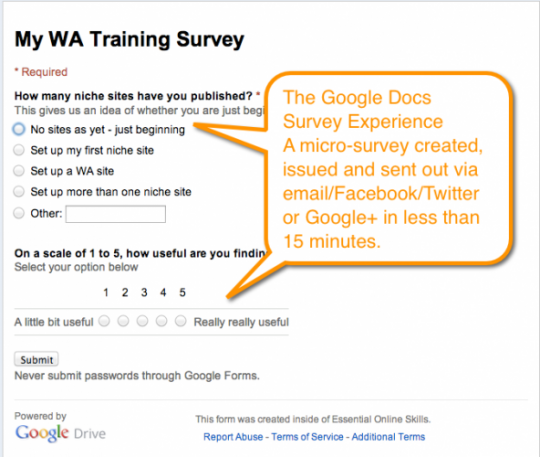 - And a Google Docs survey based on their platform is just the place to do this sort of micro-approach.