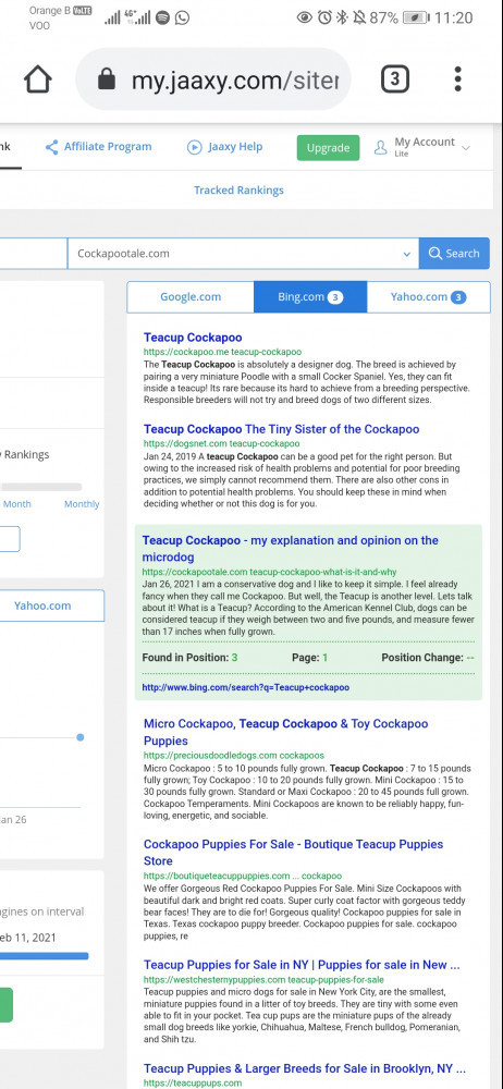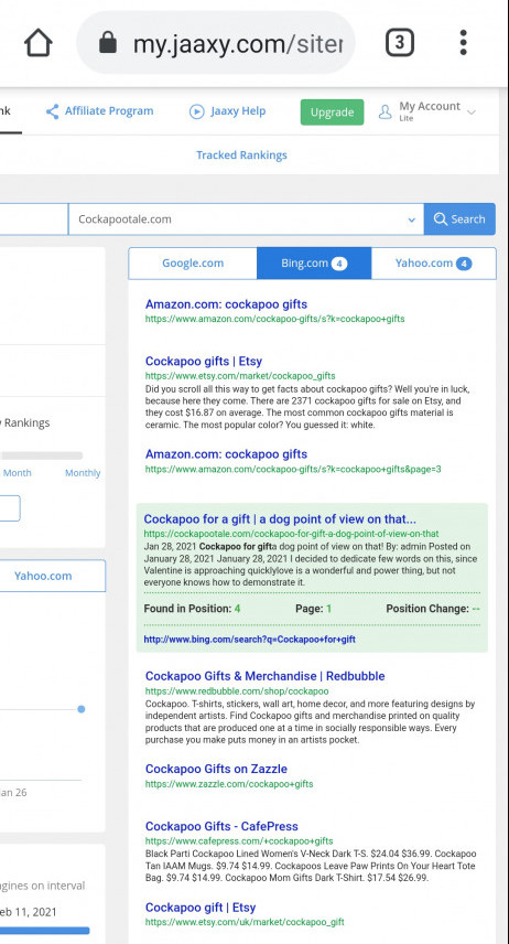 Today I just want to share what I just discover...Let me say first, that I am still building my website, not many posts yet, I am very focus on reaching the critical mass. I have 6 published so far, and I tried to look at Jaaxy how the blog is doing. To my surprise 3 posts rank in the first pages of Bing and Yahoo. Not Google yet (is it a bad thing?).