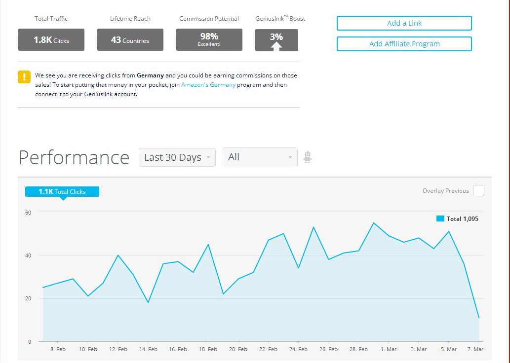 - GeniusLink offers a lot of statistics about where your readers come from, how many clicks per product link, the source of the link (is it your website, links you put in social media?), etc.