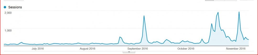 But the surprise came 2-3 months later. The infographics went viral resulting in more than 1k visitors from Pinterest alone for several days (see the spikes in the chart below).