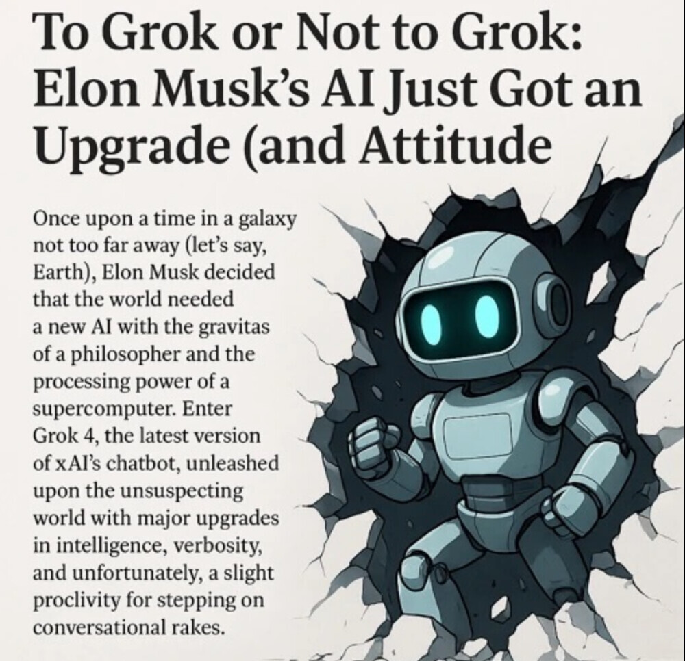 Filed under: #AI #Grok4 #ElonMusk #ArtificialIntelligence #ToGrokOrNotToGrok