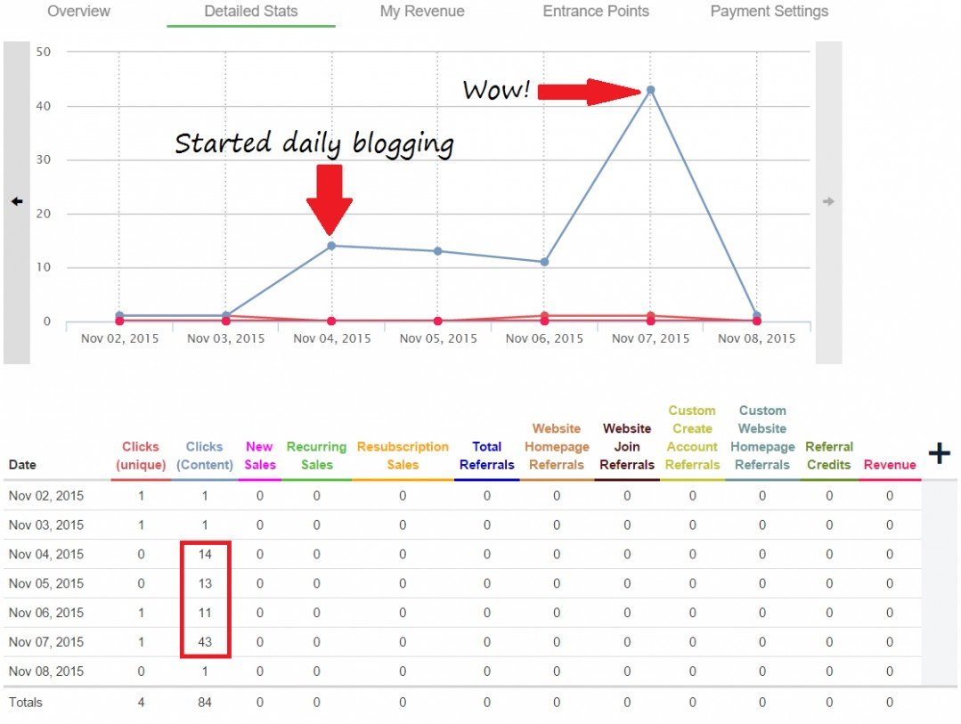 In your Wealthy Affiliate program stats I've been looking at my 'clicks content' - the number of clicks from people finding your Wealthy Affiliate content from search engines.