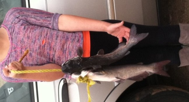So, I get the hooks off of them tie them to a rope I had brought and we went on our way home. She was smiling from ear to ear and holding the catfish proudly as we walked to our car.