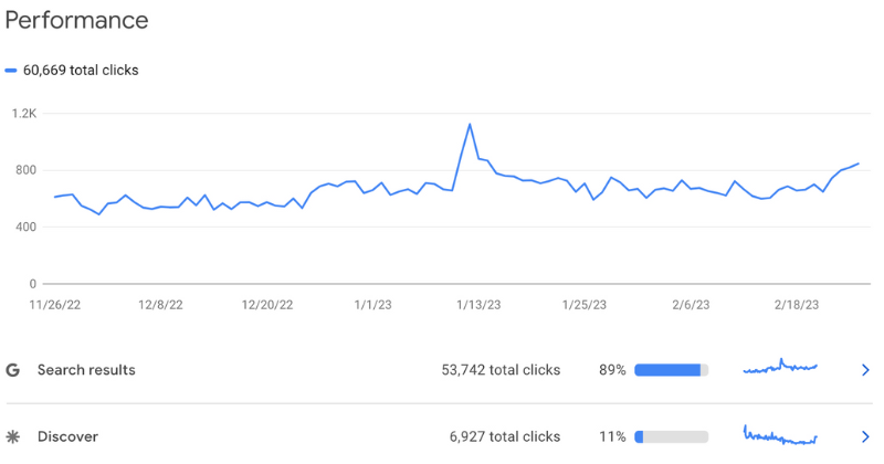 Here are my Google search results and Discover data for the past three months. The numbers are hanging in there, although it could be better.