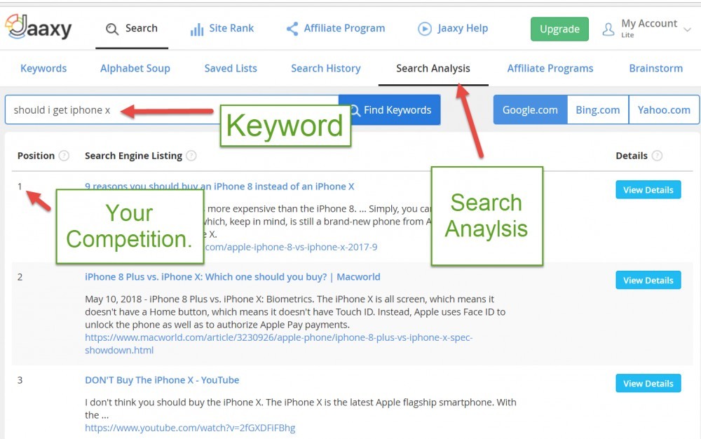 so I finally discovered that the keyword "should I get a Iphone x"was not worth going for as the competition for that keyword was quite strong.