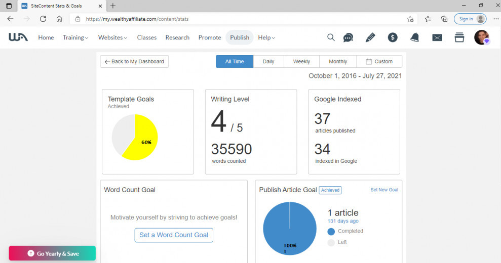 Hello my wealthy affiliate brothers and sisters! How is everyone doing? So I have been a member of Wealthy Affiliate since March 09th and launched my website on March 21st (Link is in bio if you want to take a look) It's been quite an interesting journey of self education, discipline, and hard work. There were days where I could write easily and other days where I had to kick my butt into gear. It's nice that I've completed the training and applying what I've learned in my writing, website, social media, and much more. Right now, I'm close to having over 40 articles published and I've heard that many online entrepreneurs get their breakthrough at 100 articles but I won't place my bets on it. For now, I'll be working on publishing at least two articles per week that are seo friendly, high quality, and help aspiring fitness enthusiasts gain their first pound of muscle at home. Please check out my writing stats in the photo below and let me know what you think!