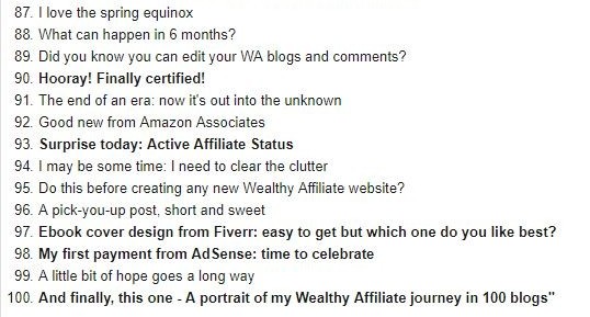 A portrait of my Wealthy Affiliate journey in 100 blogs