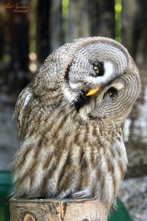An owl can turn its face upside down and swing its head around and look behind its back. They can't move their eyes which is why they can move their heads all around. Their vision and hearing is better than humans. Owls are nocturnal which means they are active during the night and roost during the day.