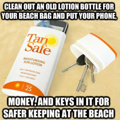 This is a great idea to keep your valuables safe at the beach. I would add some tissues or crumbled up paper to stop the items like coins and keys from jingling around.