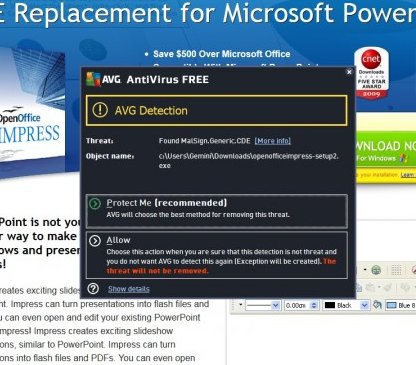 Open Office in and by itself is not a trojan or malicious. However, this AVG thing is, they try to sell this crap to you. It's difficult to get rid of it.