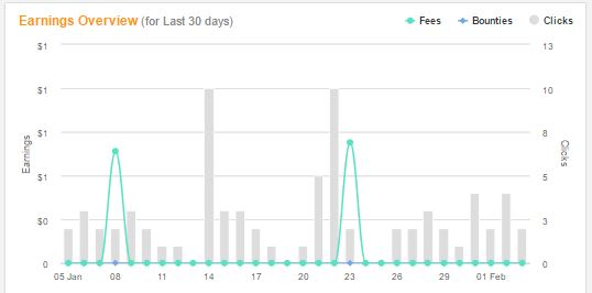 Here's a different snapshot. You can see that the grey lines represent the clicks I'm getting. Those tall blue curves are the last two sales that you see in the first image. My site now gets about 20 - 30 unique visits a day. That's not much but you can still see the results.