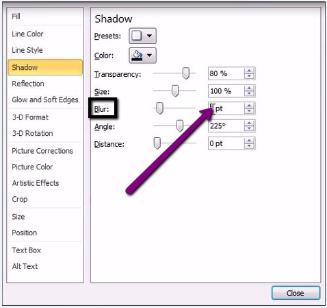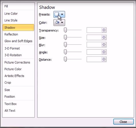 Now click on Shadow – Presets: I chose the first one of the „Perspective“: