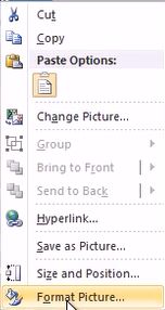 Left Mouse click on the image, right Mouse click, click on Format Picture (image below).