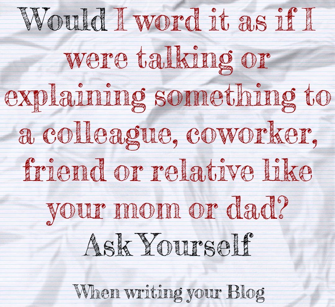 When writing do I want it to sound like I am explaining to a peer or someone where I need to use more layman terms. If it's not a technical paper then maybe we should refrain from all the technical jargon. Whether you K.I.S.S. it or Dumb it down try to make sure a majority of your readers can understand what they are reading. I say majority because unfortunately everybody won't get it.