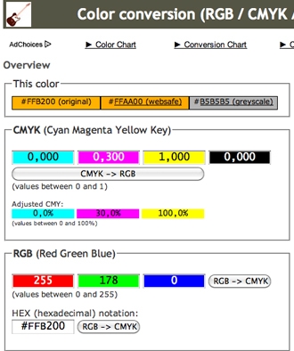 If you have a specific brand colour you find also colour converters from hex to cymk or rgb and back (http://web.forret.com/tools/color.asp)