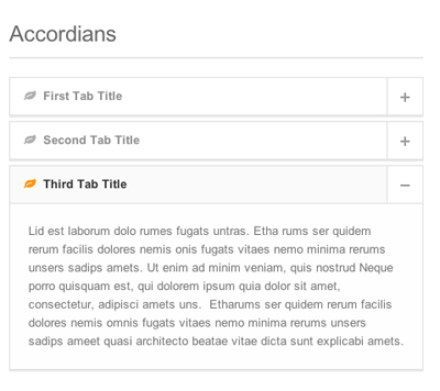 accordions, boxes, tabs, toggles, and more .... You will find some plugins that will allow you to work with the shortcodes (Arconix Shortcodes http://wordpress.org/plugins/arconix-shortcodes/)
