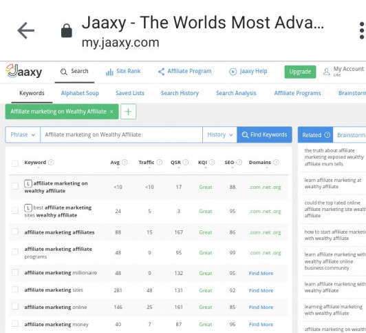 To get more specific and get more traffic to the website, another keyword search platform which is included to Wealthy Affiliate platform package which is the JAAXY. An Affiliate and online Marketers dream to have the best and efficient, This research platform it captures the data you need about a keyword and it does efficiently.