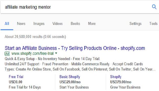 I put into Google search 'affiliate marketing mentor' and 20.5 million results came up. This is clearly too much competition so I then tried to narrow it down by searching for a title called 'affiliate money makers'...this narrowed the competition down to 14.6 million.