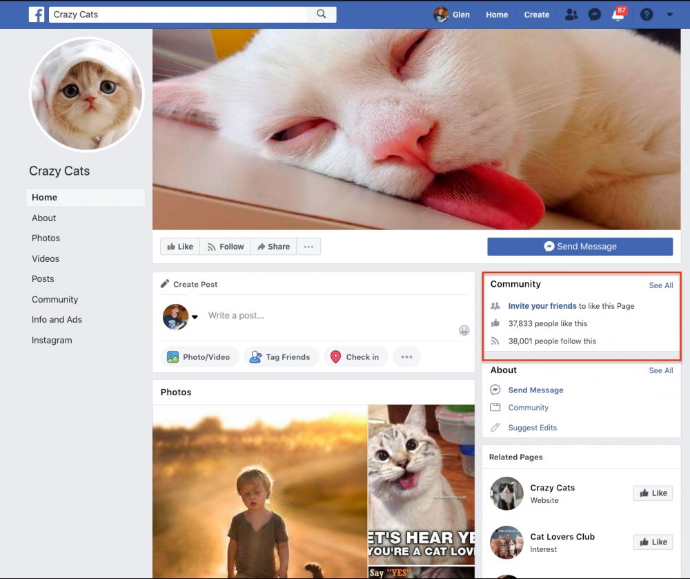 As you will see in the red box above Crazy Cats has 38,000 people who follow the page.