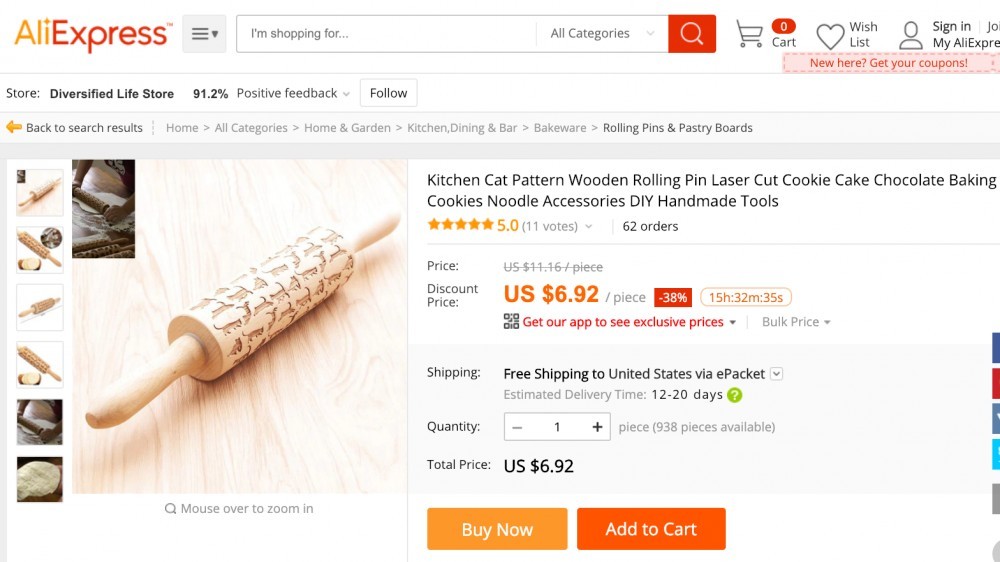 Here we have a Cat Rolling Pin on AliExpress for $6.92. What do you think people would be willing to purchase this for?