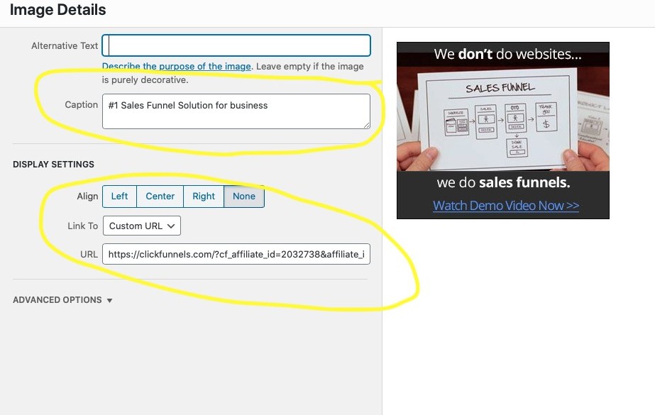 If your using your OWN images or Wealthy Affiliate images ONLY you can also add the hyperlink to your website or your WA Affiliate link. Do not do this with free stock images unless it expressly gives you permissions to do so which is usually visible before you download the image.
