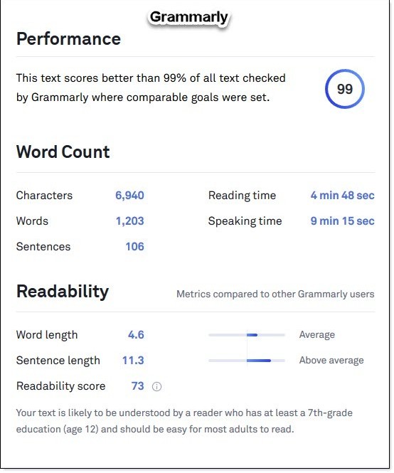 Since I don't use Yoast, I had to look elsewhere. I currently use Grammarly and Hemingway Editor. I also found other useful tools, which I list below in no particular order. I include Grammarly and Hemingway examples for comparison.